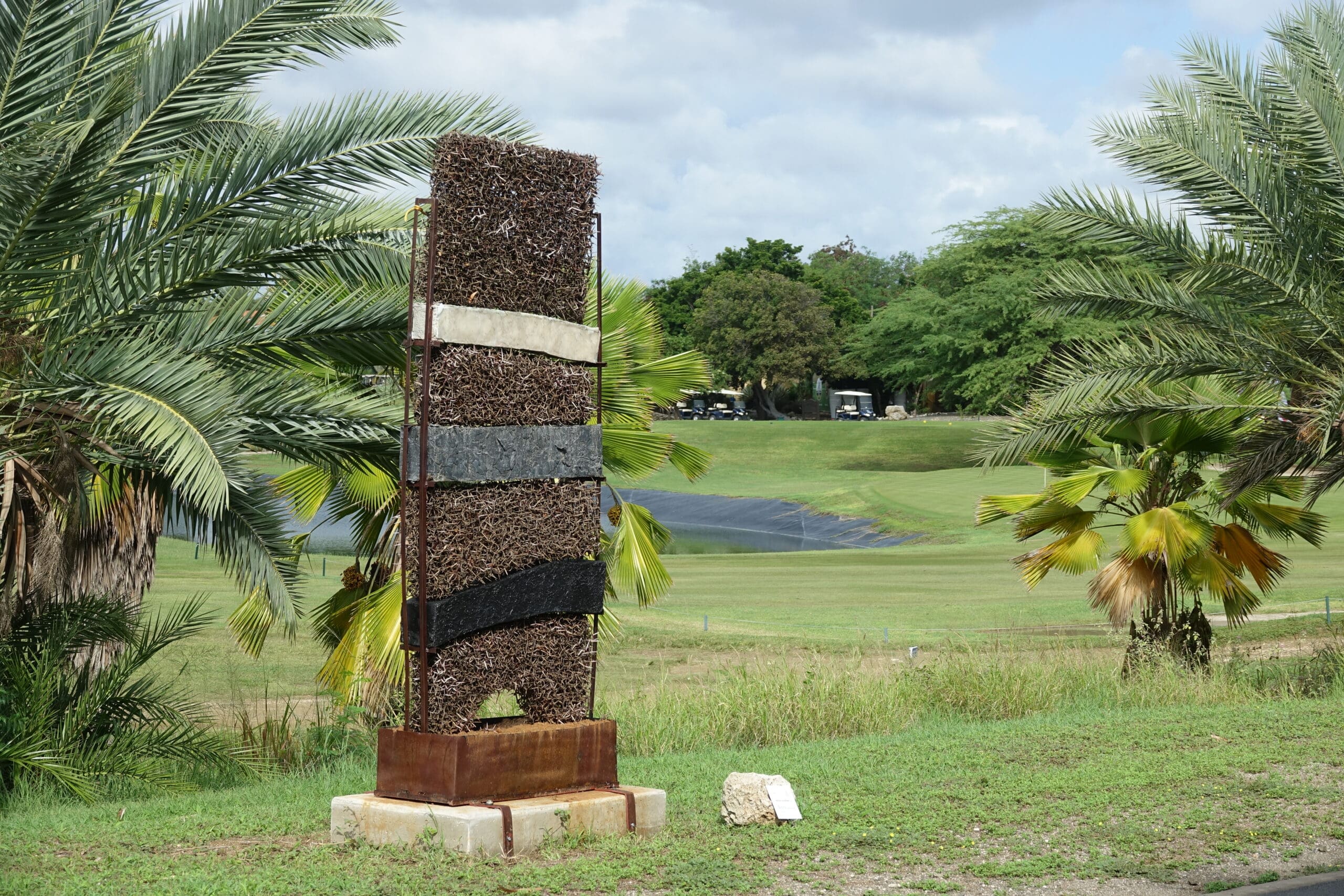 Herman van Bergen (1953) is a multidisciplinary visual artist. He became known for his paintings and drawings and especially with his works of art made of thorn branches (sumpiña art). From 2012 to the present, Herman van Bergen has been working on his magnum opus Cathedral of Thorns, in the garden of Landhuis Bloemhof. The cathedral, like this work, is an indictment of the destruction of nature by man. The growth of thorn bushes, the Acacia Tortuosa, is after all the result of desertification of the landscape. The cathedral has the subtitle Ode to the free spirits, and is also an ode to the original inhabitants, the Caquetios. The asphalt also used in Harvest symbolizes the speed of peoples, the lead the weight of our mutual relationships, the paraffin the mantle of love and the red earth the blood of our ancestors. In 2016 Herman van Bergen received the Cola Debrot Prize for his oeuvre. In 2020, the work of art by the Cathedral of Thorns won two international CODA awards: in the Landscape category and the People’s Choice Award.