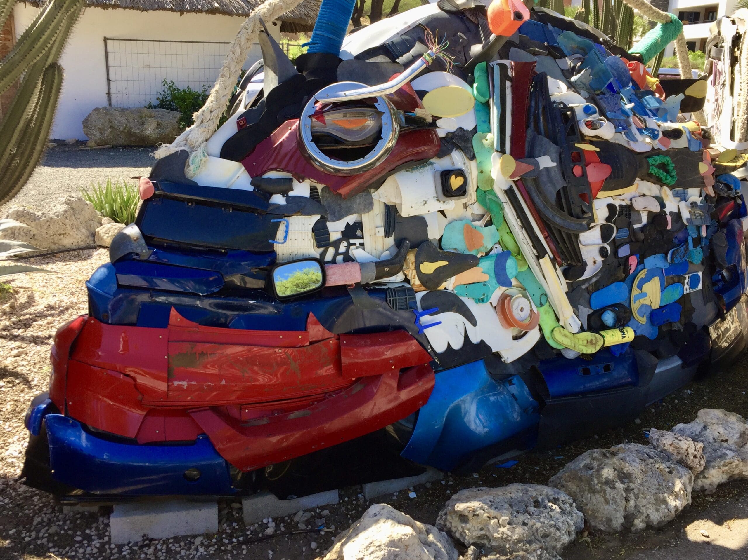 With the assistance of Alex Dijk and children from the Blenchi school. Government II is a piece of art by Roberto Tjon-A-Meeuw (1969) situated at the entrance to the beach. During the Open Atelier Route Curaçao 2021, school children completed the work together with Roberto. The big fish is made from plastic waste and other waste material collected on the northern coast of Curaçao. An anonymous sponsor financed this work. The artist draws attention to the endangered underwater world and the role that the government should play in protecting the environment. Government I is located in Parke Leyba in Punda.