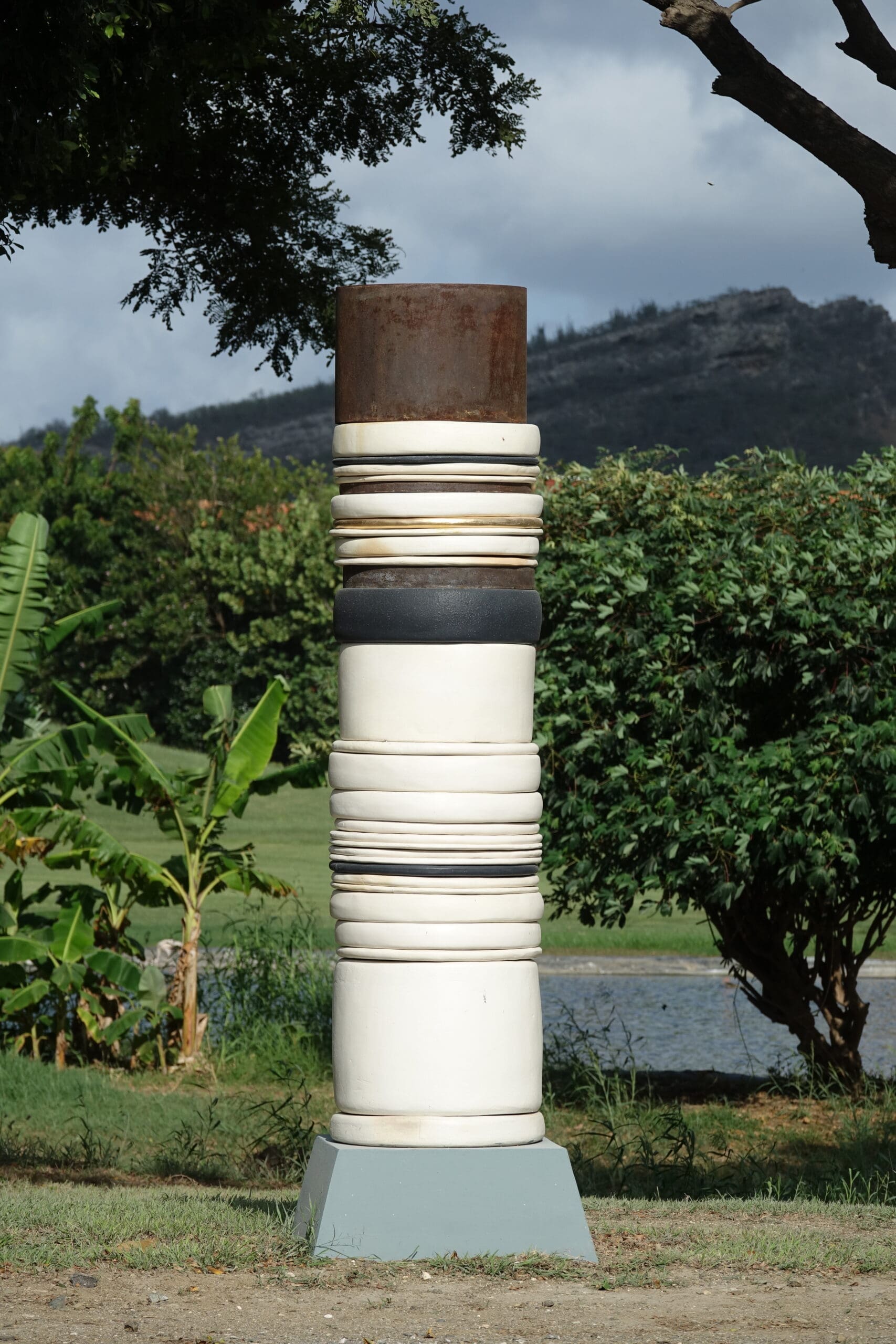 Ellen Spijkstra has constructed the totem called Through the Years for the sculpture route, which symbolizes the growth of a palm tree; with good and bad years. For many years Spijkstra has taught numerous students the secrets of technology, materials and design in the ceramic field. Since she stopped teaching and organizing workshops, for which the most famous ceramists from the world loved to come to Curaçao, she can spend more time participating in exhibitions and art residencies in faraway places such as South Korea and China, cradles of ceramic art. In 2023, Ellen Spijkstra received the Cola Debrot Award, the highest cultural honor of Curaçao.