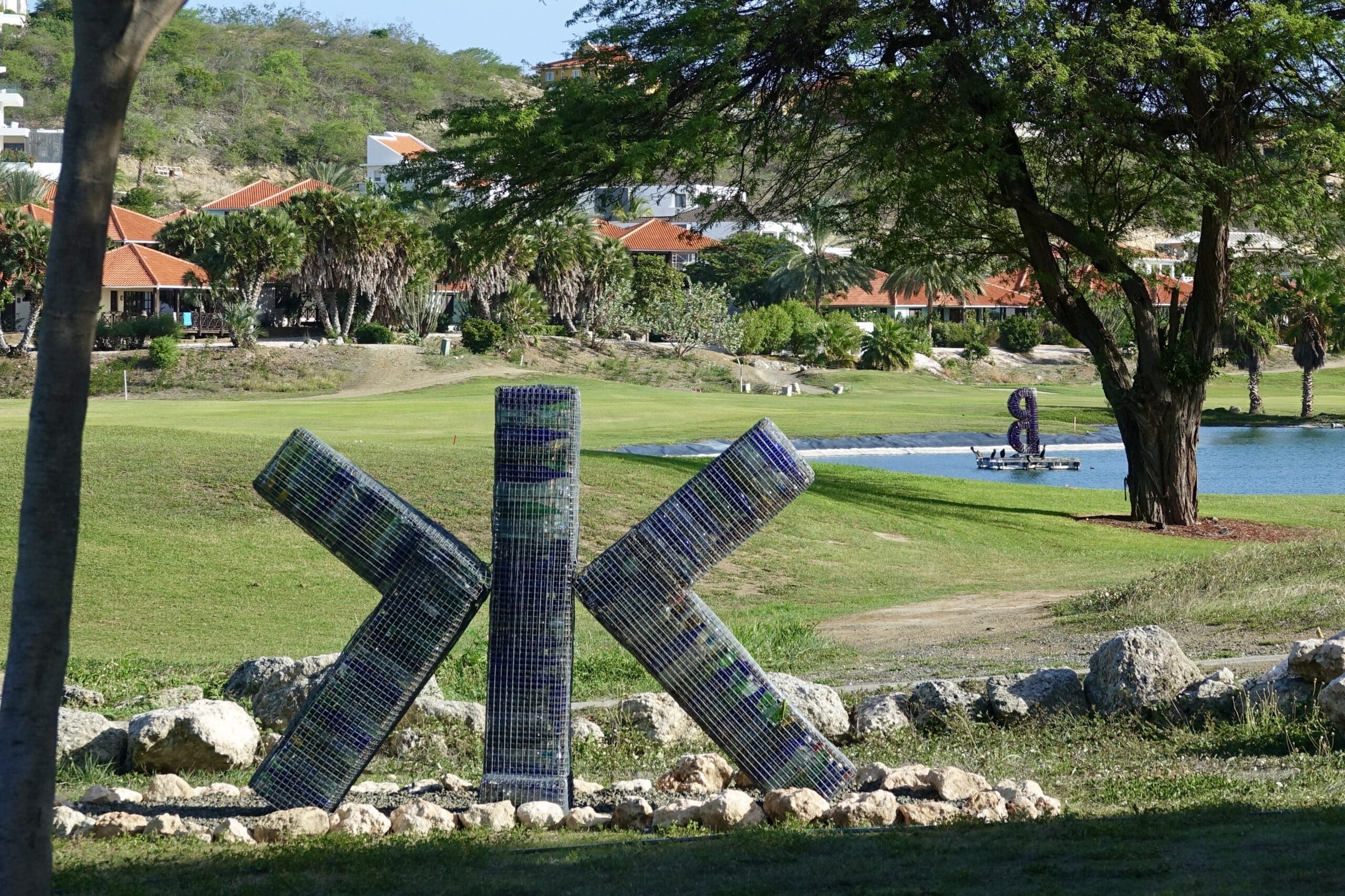 Samen met de Big B, een kleinere uitgave hiervan en een zon welke in Kirindongo’s (1946) museum staan te pronken, maakt de Double K deel uit van een serie van 4 sculpturen, bestaande uit lege flessen. De Double K is opgebouwd uit een veelkleurig allegaartje van flessen die niet alleen water als inhoud hebben gehad. De sculptuur is voorzien van LED-verlichting. Sommigen zien in de Double K de Vitruvius man van Leonardo Da Vinci. Met de Big B vormt de Double K op Blue Bay een twee-eenheid: de één in het water al drijvend, de ander op het land, sterk op eigen benen.