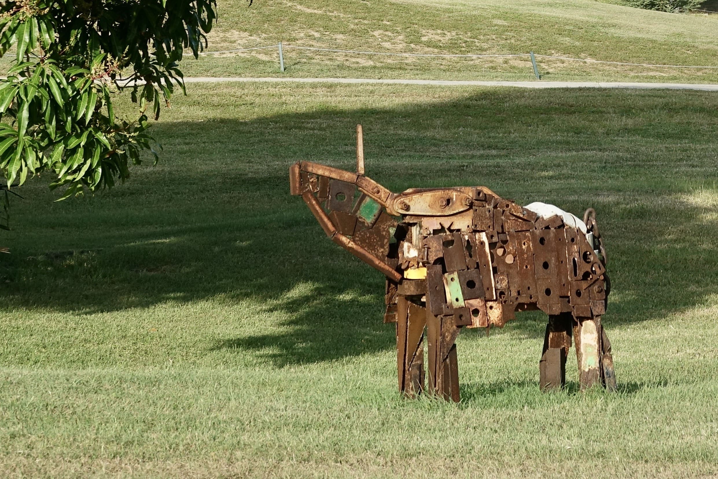 De Eenhoorn van Wawoe (1939) is uit hetzelfde idee ontstaan als de Pegasus. Ook hier een fabeldier, niet het elegante witte paard uit de sprookjes maar een die vast in de grond – de werkelijkheid van de beeldhouwer – is verankerd. De binnen-constructie is een snijmachine welke een eenheid wordt met de vooral vierkante metaalplaatjes op de buitenkant. Het vervreemdende design geeft een eigenaardige dimensie, dat is wat een kunstwerk moet doen- verrassen en ontroeren.