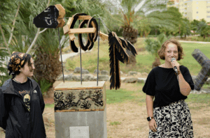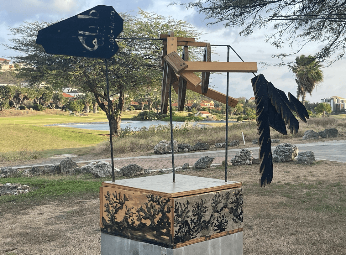 Madou Lammers en Stephanie de Araujo, studenten van het Instituto Buena Bista, realiseerden samen de sculptuur Fish. In hun werk komt de onderwaterwereld tot leven. Geïnspireerd door skeletten in musea en opgebouwd uit hout en metaal, creëerden zij een abstract skelet van een orka. De sokkel is beschilderd door Stephanie en toont een dromerige, geschilderde leefwereld van het dier. Het werk, dat soms zacht beweegt in de wind, lijkt te verlangen naar de zee in de verte — een subtiele poëtische verwijzing naar leven, vergankelijkheid en beweging.