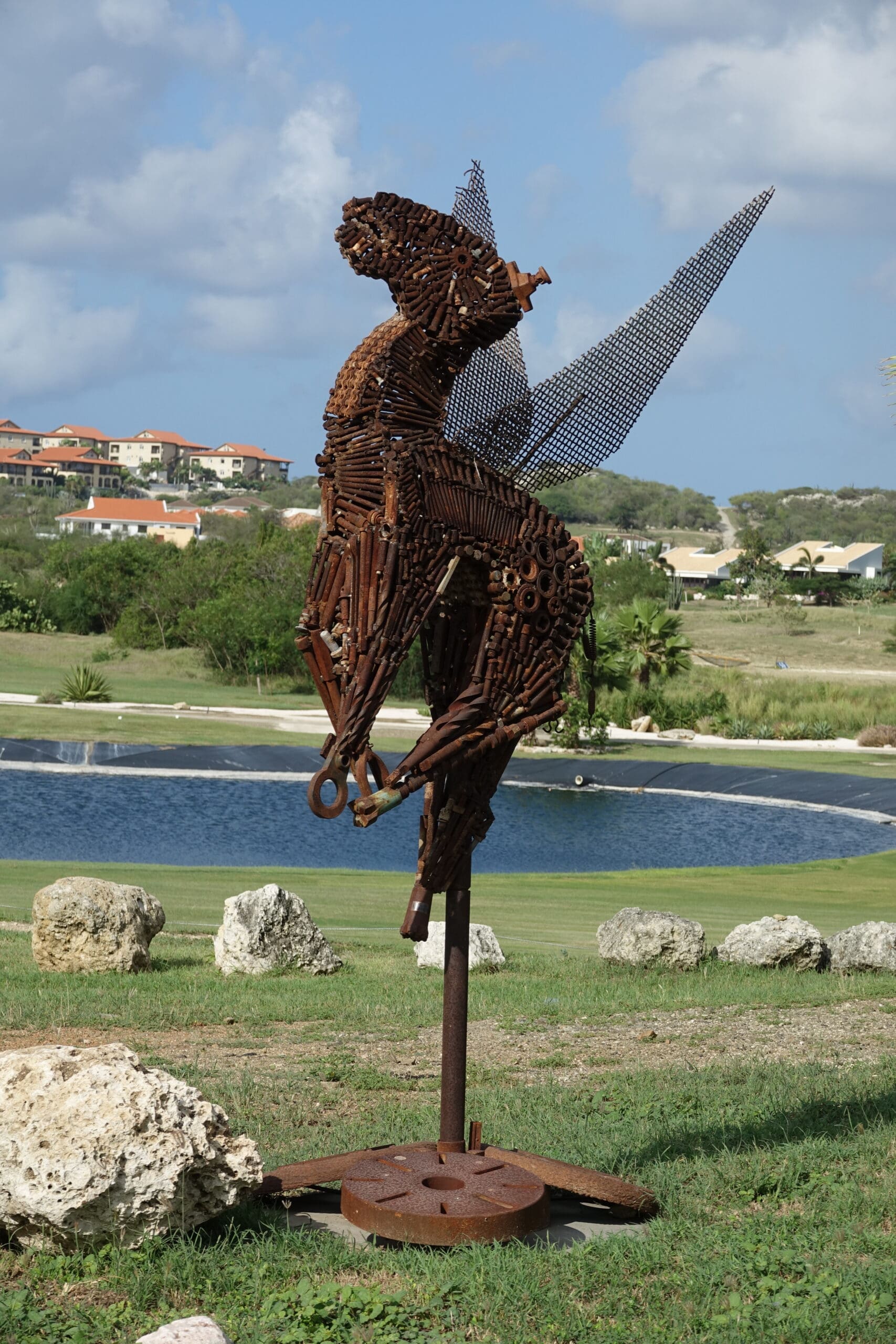 De Pegasus, het Vliegend Paard van Brigitte Wawoe (1939-2025) uit de Griekse mythologie, is een mooi symbool voor de kunstenaar gezien het feit dat hij is samengesteld – gelast – uit ontelbare delen en deeltjes (schroeven en machineonderdelen) zoals al die ideeën die de kunstenaar moet zien te combineren tot een eenheid. Het maken was niet zonder gevaar, het werd een zwaar werk, dat ook nog van de grond moest afkomen. Een Pegasus moet tenslotte vliegen. De complexiteit tot een eenheid te smeden was een hele uitdaging, een hele puzzel. Het materiaal door de mens gefabriceerd – cultuur – tot kunst te verheffen is in dit geval heel bijzonder.